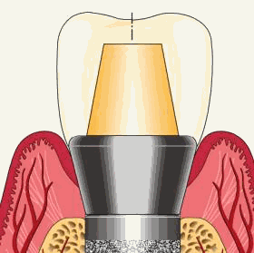 3 - Integrazione a livello protesico L’utilizzo di un perno moncone personalizzato e parallelizzato in laboratorio consente il superamento dei limiti biomeccanici, estetici e di occlusione tipici dei sistemi con connessione avvitata. |